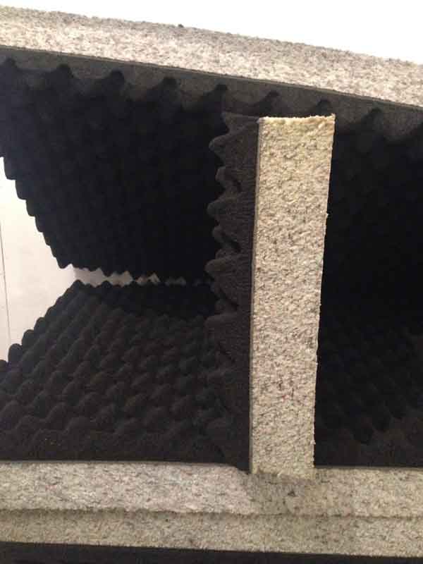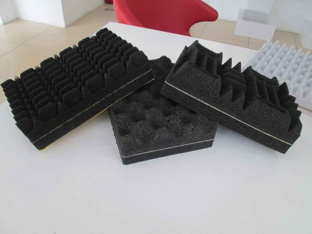 Bariyerli Yumurta Sünger, alt yüzeyinde düz, üst yüzeyinde akustik yumurta sünger olup arasında epdm bariyer lamine edilmektedir. Akustik düzenleme sağlayarak ortamdaki yüksek ses temposunu yok etmektedir. Yüksek ses temposunu kesen bariyerli sünger özellikle vibrasyon ve titreşim problemlerine de çözüm sunmaktadır.